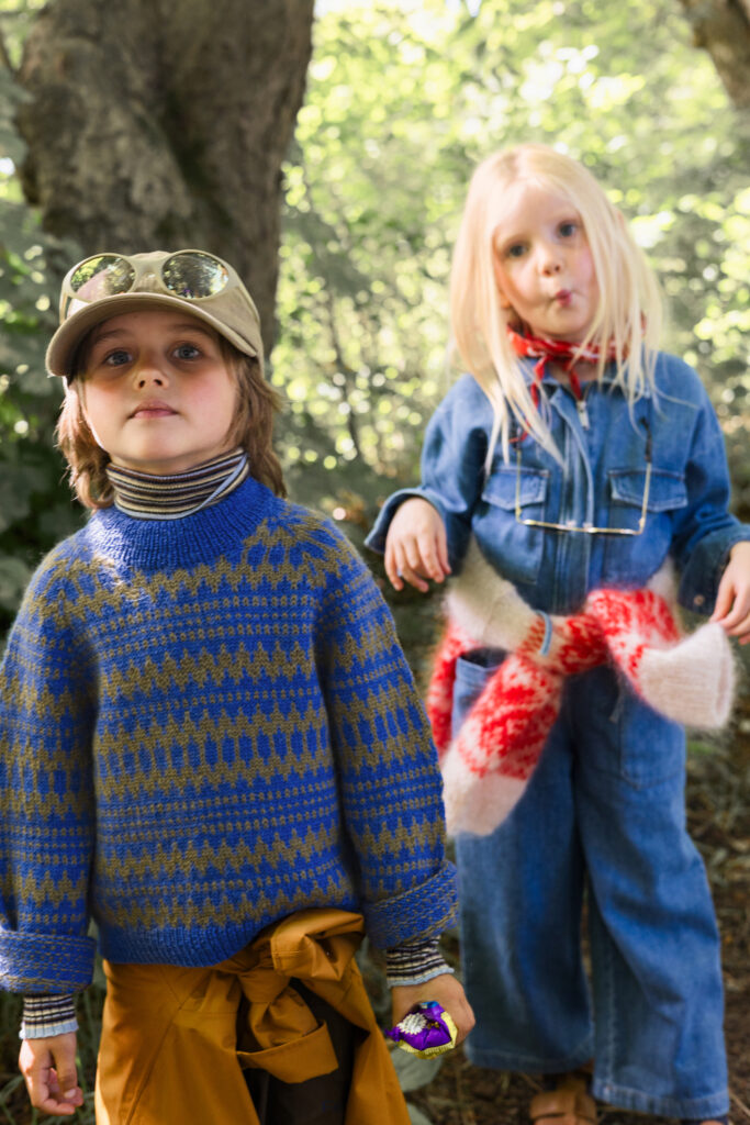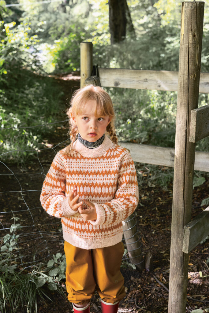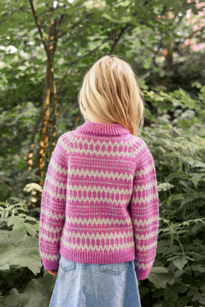 Tynn Peer Gyntist ja Mini Alpakkast ülevalt alla kootud mustriline sviiter lastele. Muster on inglise keeles.