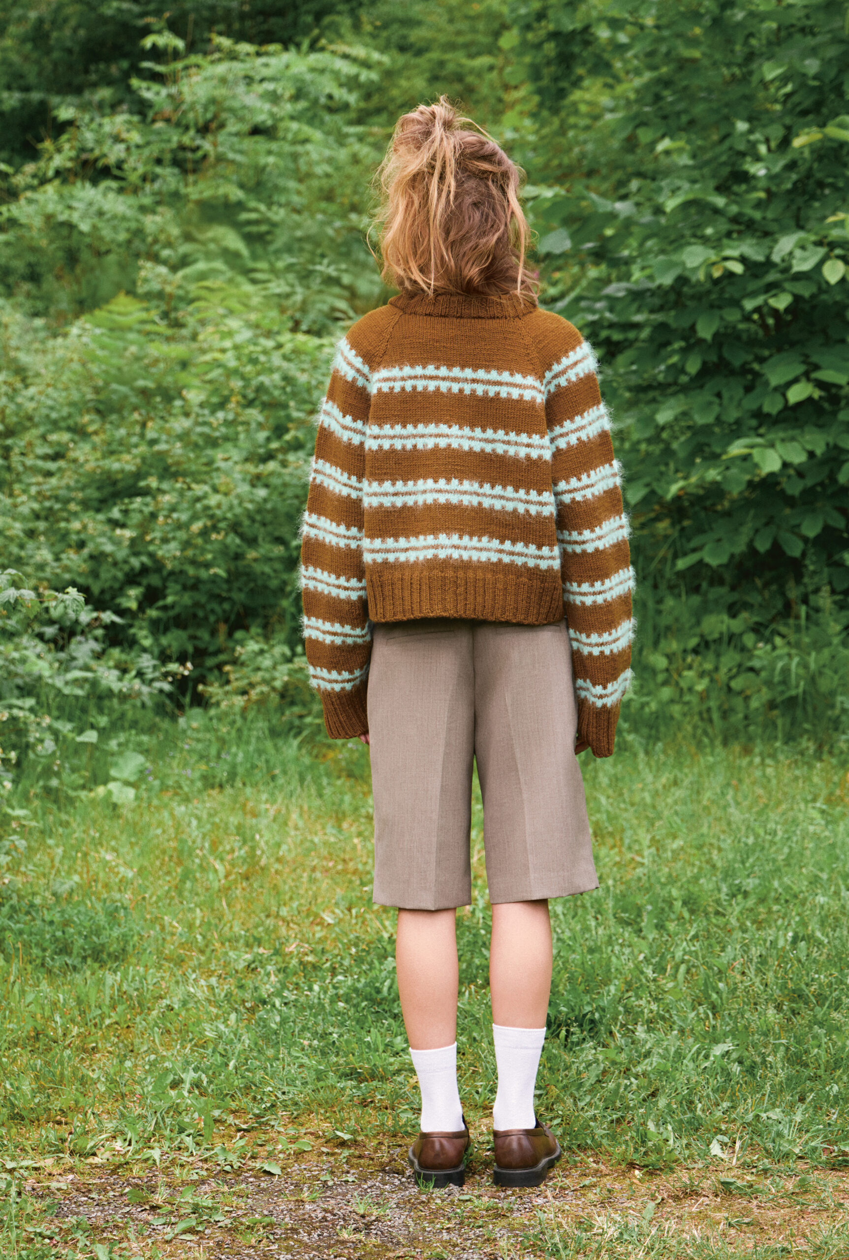 Peer Gyntist ja Ballerina Chunky Mohairist kootud sviiter naistele. Muster on inglise keeles. Ballerina Chunky Mohairi võib asendada ka Peer Gynti teise tooniga.