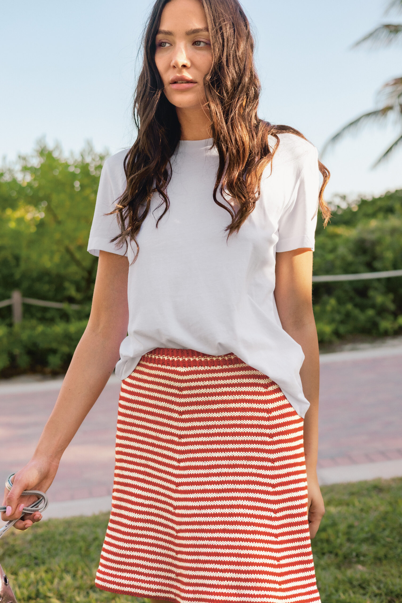 Triibumustriline Cleo sviiter ja seelik on kootus Line lõngast. Sviiter ja seelik on kootud ülevalt alla. Muster on inglise keeles ja sisaldab nii seeliku kui sviitri õpetust.