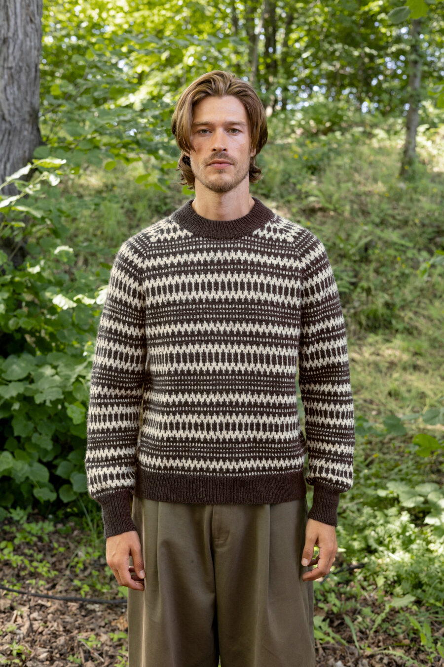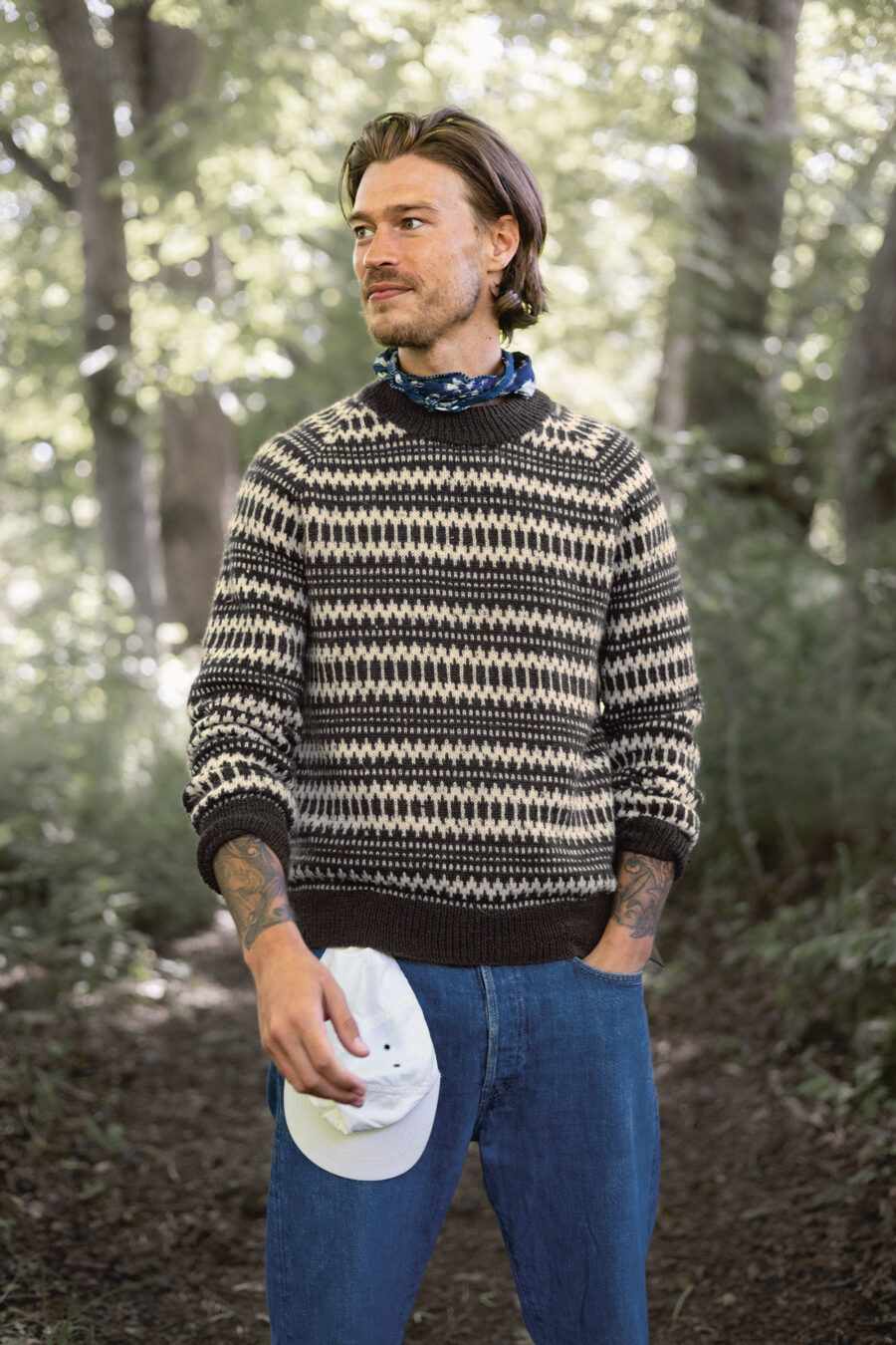 Kleiva sviiter meestele on kootud Tynn Peer Gyntist. Muster on inglise keelne.